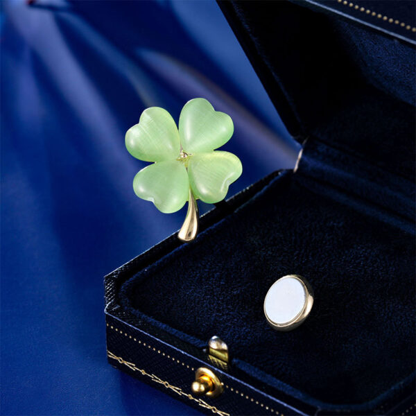Gửi Gắm An Lành: Pin Cài Áo Cỏ 4 Lá Pha Lê Xanh – Điểm Nhấn May Mắn Cho Phong Cách