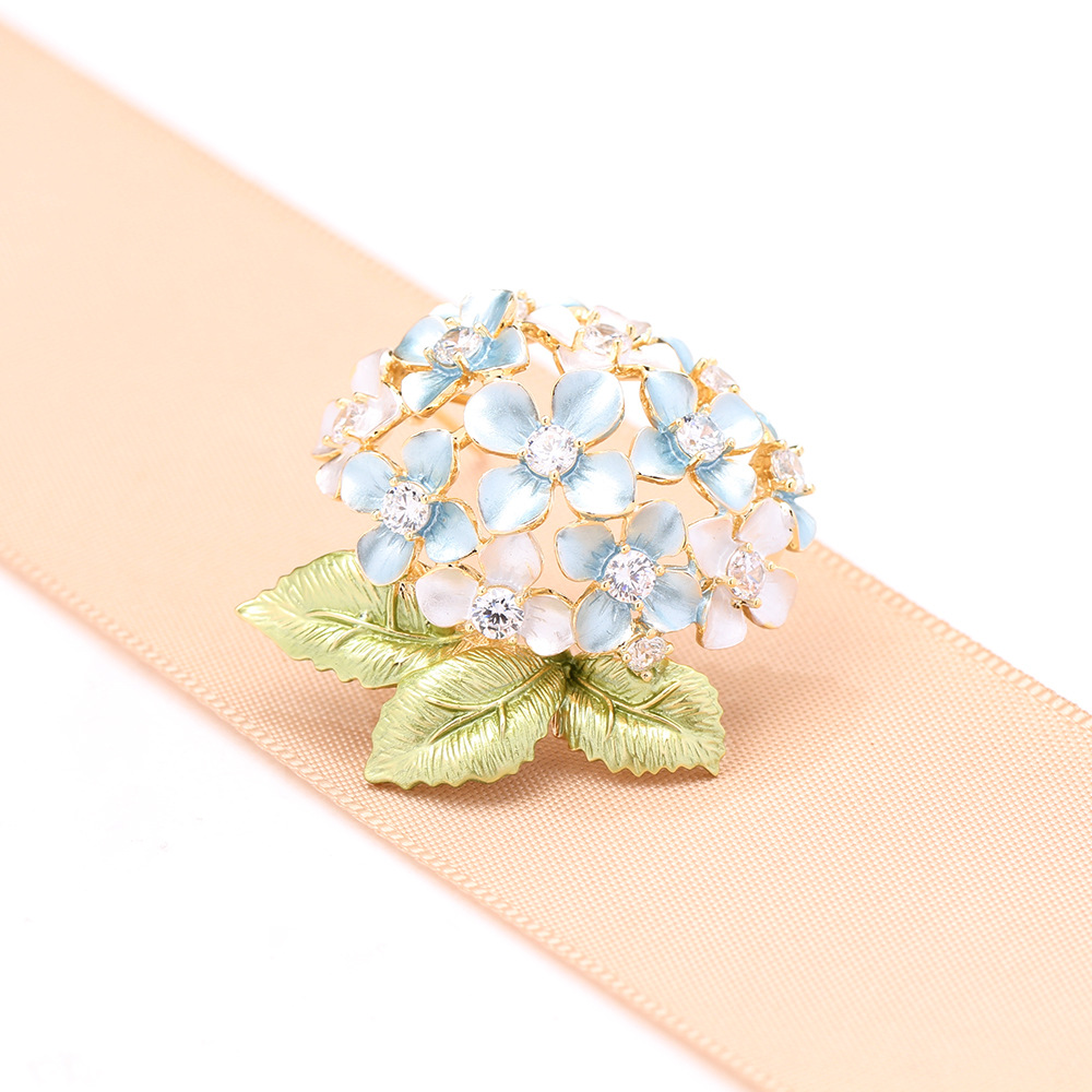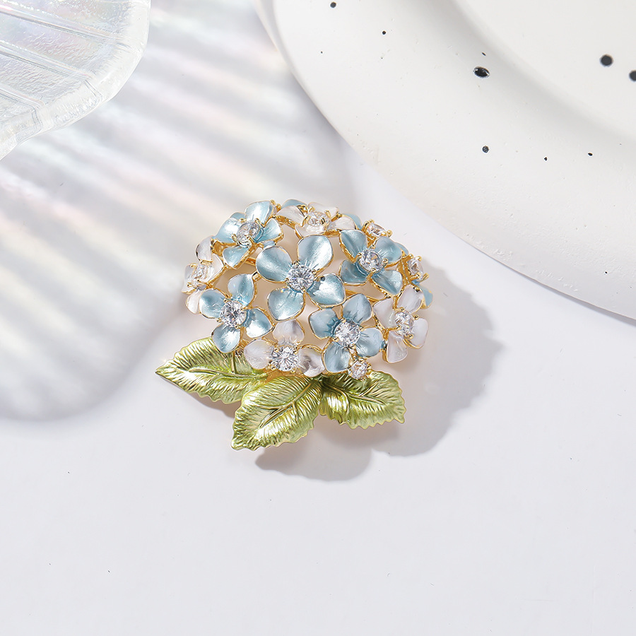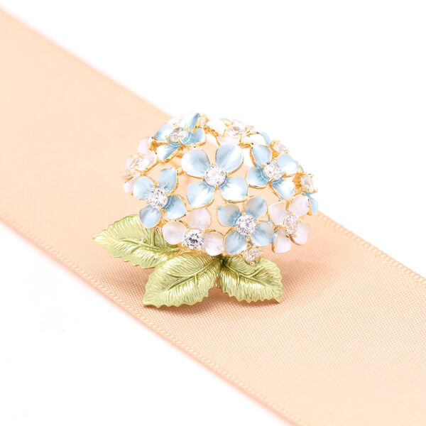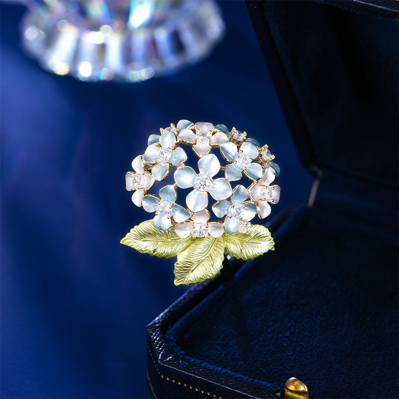 Trâm Cài Áo Hoa Cẩm Tú Cầu Xanh Đính Đá