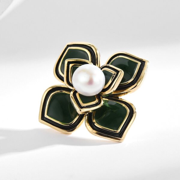 - Điểm nhấn ngọc trai quý phái: Trung tâm bông hoa là viên ngọc trai tự nhiên sáng bóng, mang vẻ đẹp thuần khiết và sang trọng. Ngọc trai không chỉ là biểu tượng của sự quý phái mà còn là hiện thân của vẻ đẹp vĩnh cửu.