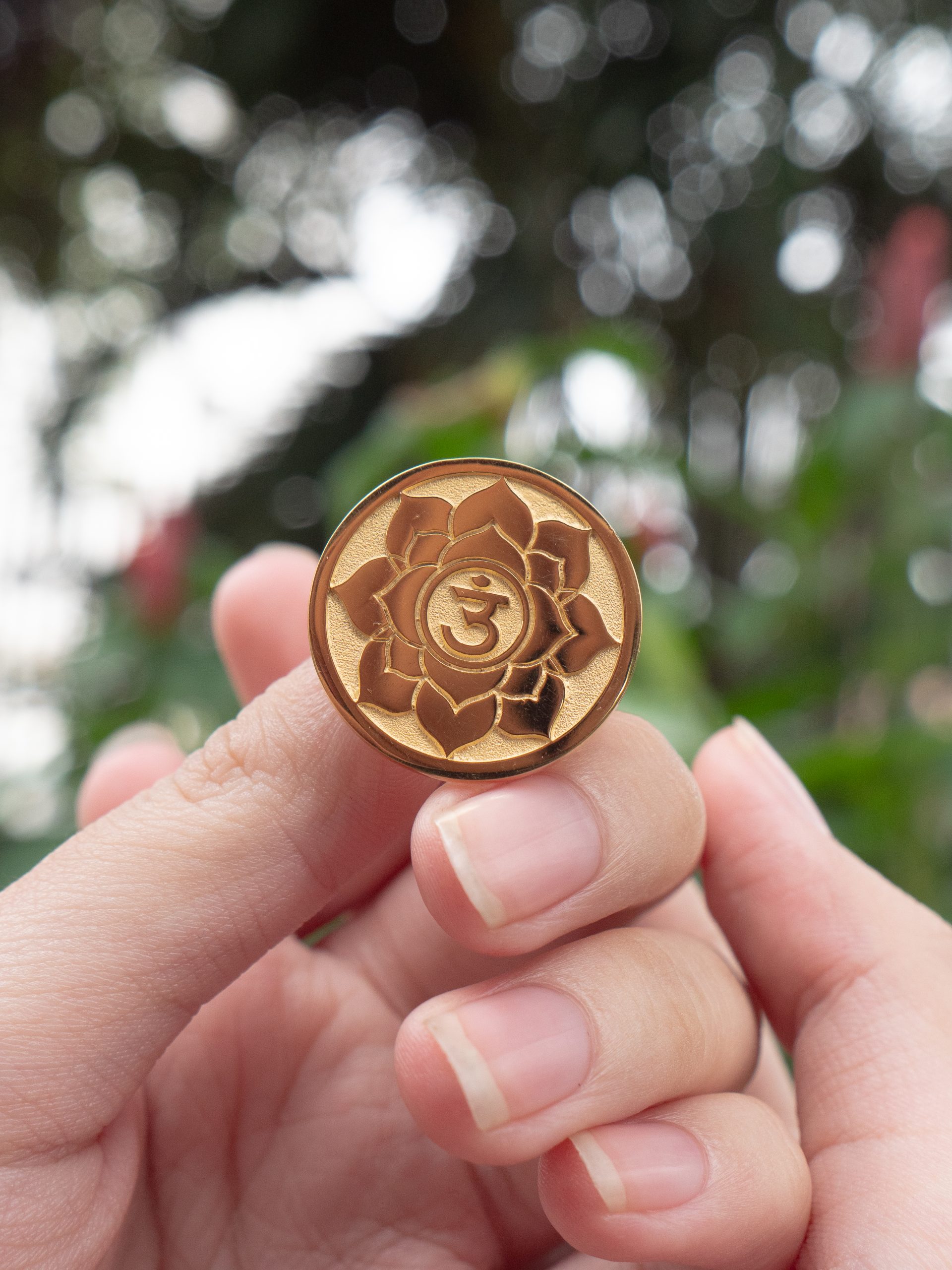 Ghim cài áo hoa sen Om Phật Giáo mạ vàng 24K