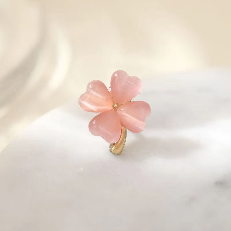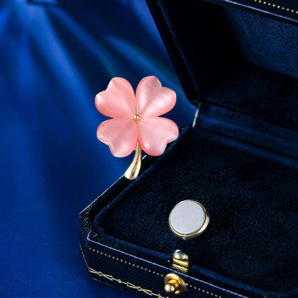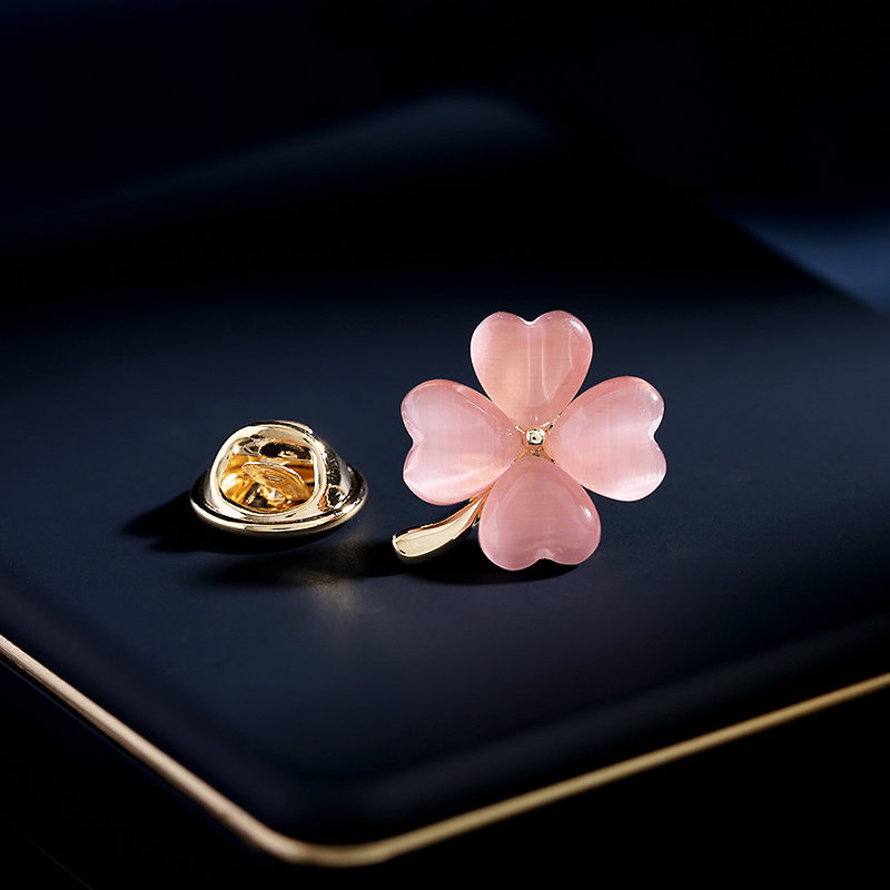 Gửi Gắm An Lành: Pin Cài Áo Cỏ 4 Lá Pha Lê Hồng – Điểm Nhấn May Mắn Cho Phong Cách