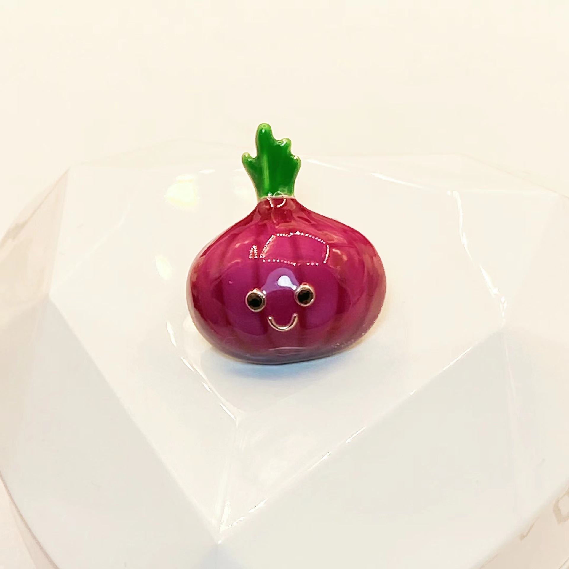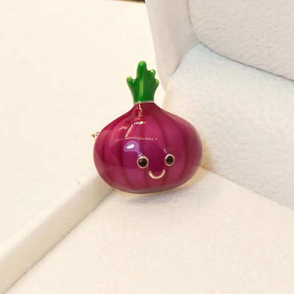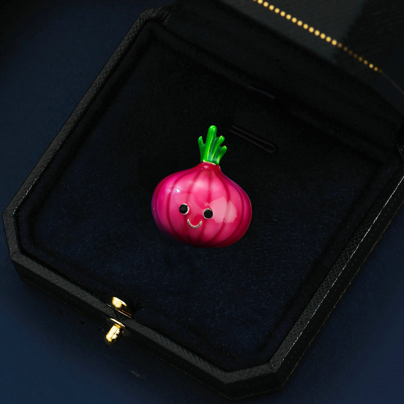 Món trang sức cài áo củ hành tím baby là một sự sáng tạo đầy thú vị, biến một loại rau quen thuộc thành một điểm nhấn thời trang độc đáo. Hình ảnh củ hành tím baby được tái hiện một cách tinh tế, với những đường nét mềm mại, màu sắc tươi tắn và vẻ ngoài đáng yêu. Món trang sức này không chỉ là một phụ kiện, mà còn là một tuyên ngôn về sự cá tính và dám khác biệt.