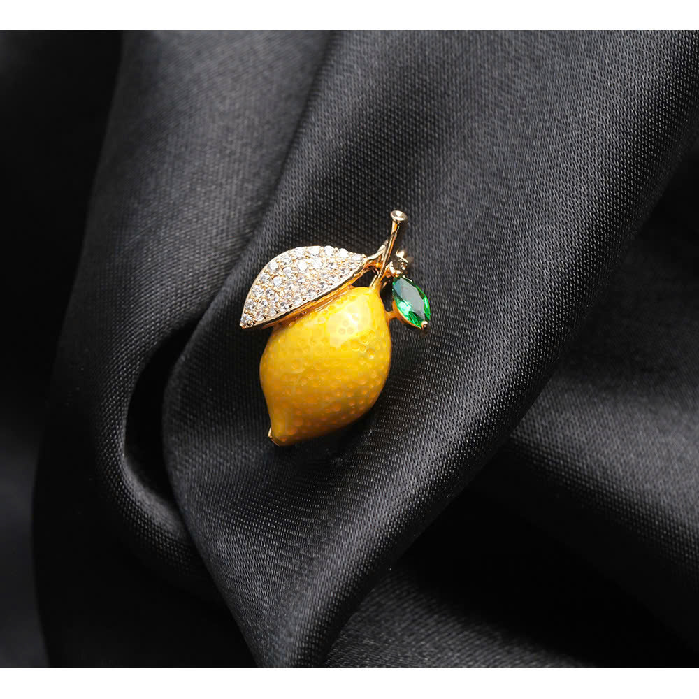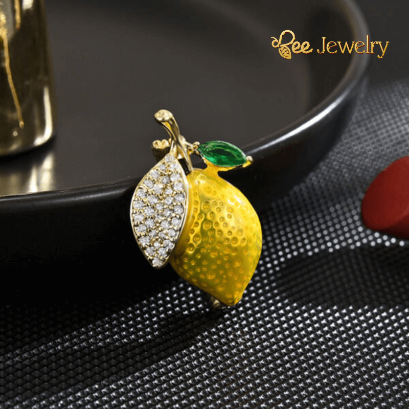 Chất liệu hợp kim cao cấp cùng lớp mạ vàng 18K sáng bóng, bền màu, thể hiện đẳng cấp và gu thẩm mỹ tinh tế. Quả chanh được tráng men tỉ mỉ, màu sắc sống động, kết hợp với những viên đá kim cương nhân tạo lấp lánh, tạo nên vẻ đẹp sang trọng và quyến rũ.