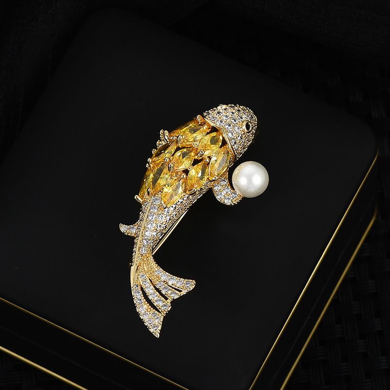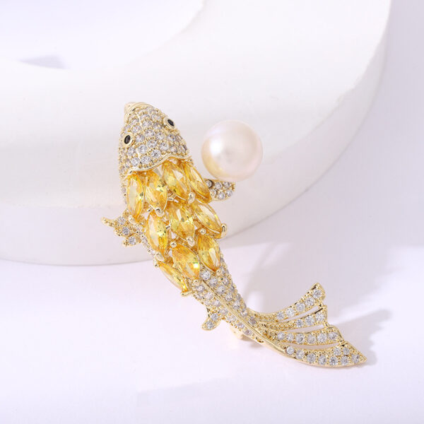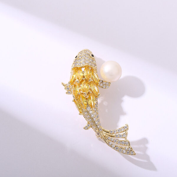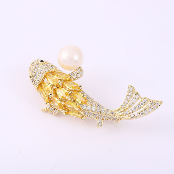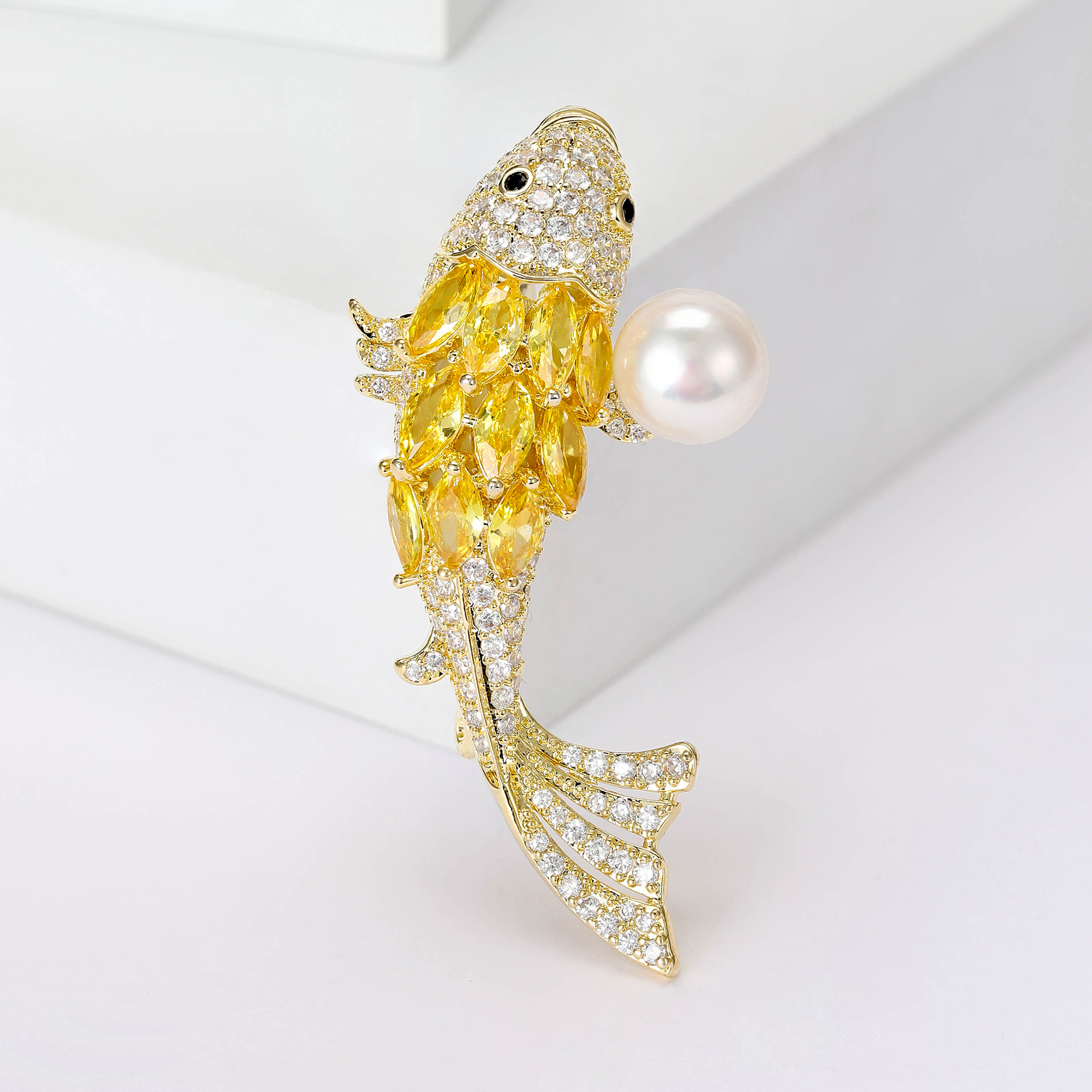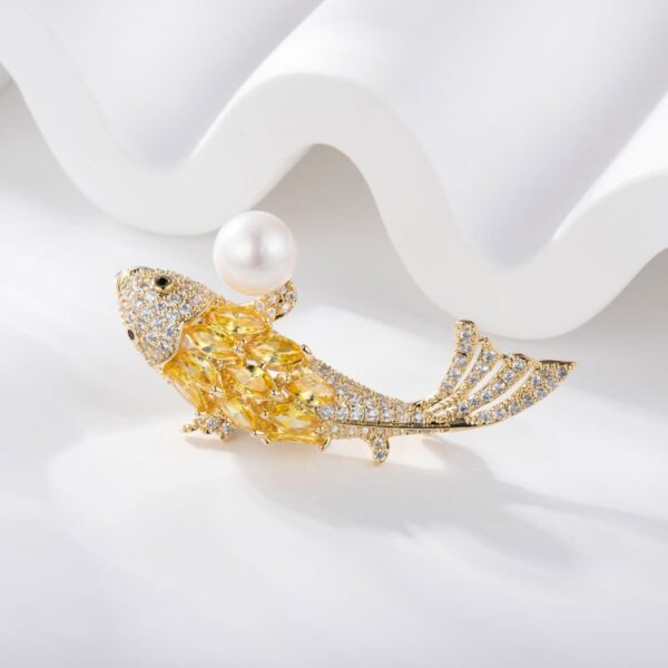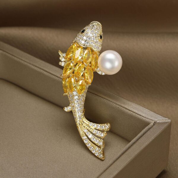 Vẻ Đẹp Vượt Thời Gian: Phụ Kiện Cài Áo Cá Koi Pha Lê Vàng Đính Ngọc Trai – Biểu Tượng Của Sự May Mắn
