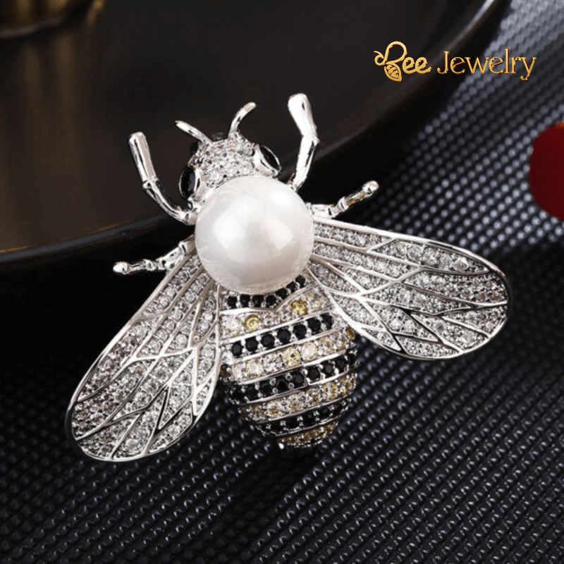 - Sở hữu ngay chiếc trâm cài áo con ong bạch kim đính ngọc trai này để thêm phần tự tin và tỏa sáng.