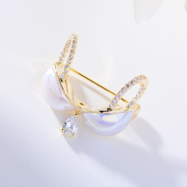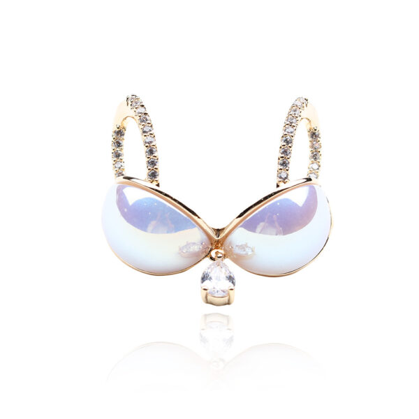 Hãy tưởng tượng, trên nền áo sơ mi trắng đơn giản, hay trên chiếc blazer màu pastel thanh lịch, chiếc cài áo hình áo tắm khẽ đậu, tỏa sáng lấp lánh. Hình ảnh áo tắm được tái hiện một cách tinh tế, với những đường nét mềm mại, uyển chuyển và vẻ ngoài đáng yêu. Những viên đá kim cương nhân tạo được đính kết tỉ mỉ, tạo nên hiệu ứng lấp lánh đầy mê hoặc, thu hút mọi ánh nhìn. Bề mặt áo được tráng men tinh xảo, mang đến màu sắc tươi tắn và độ sáng bóng bền lâu.