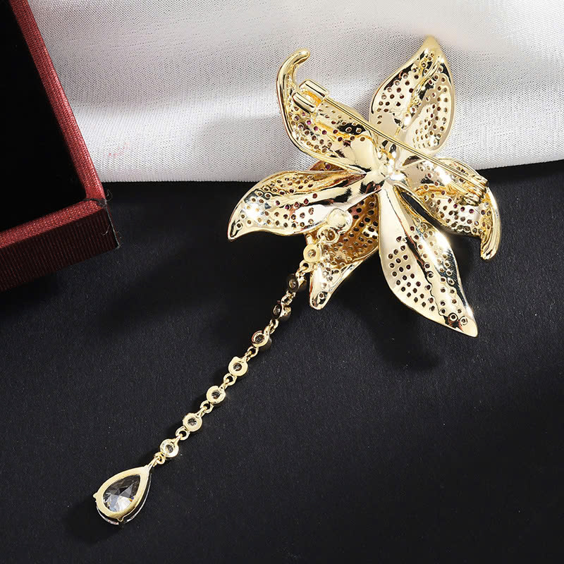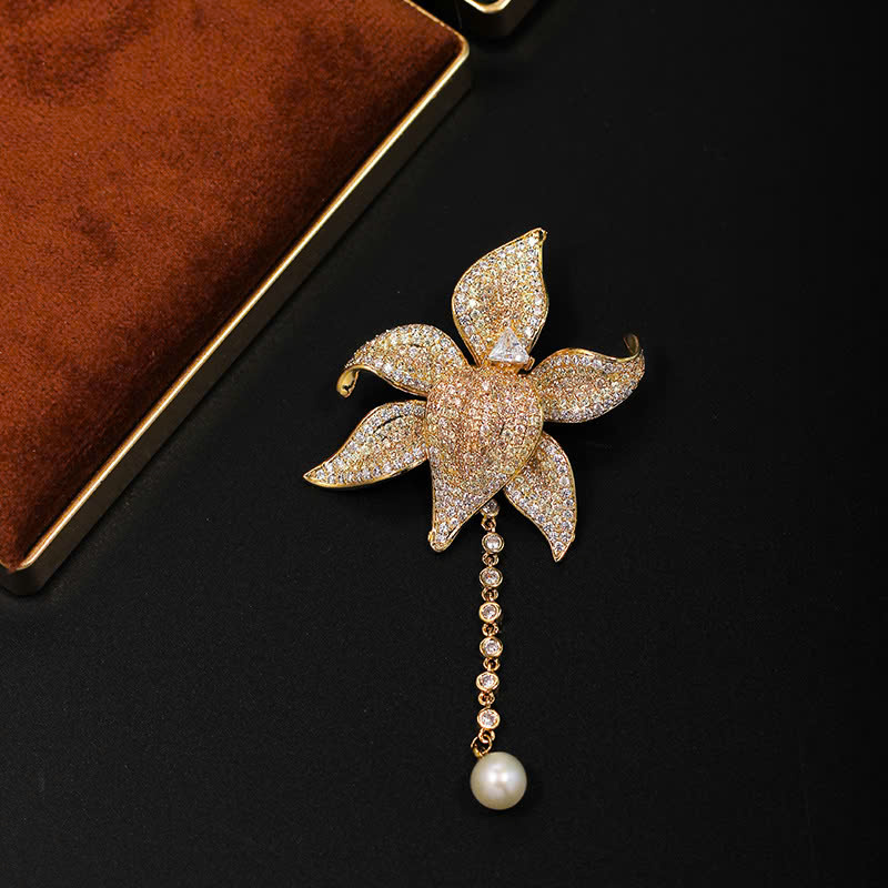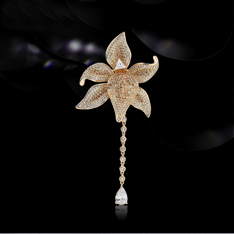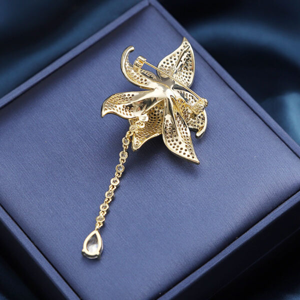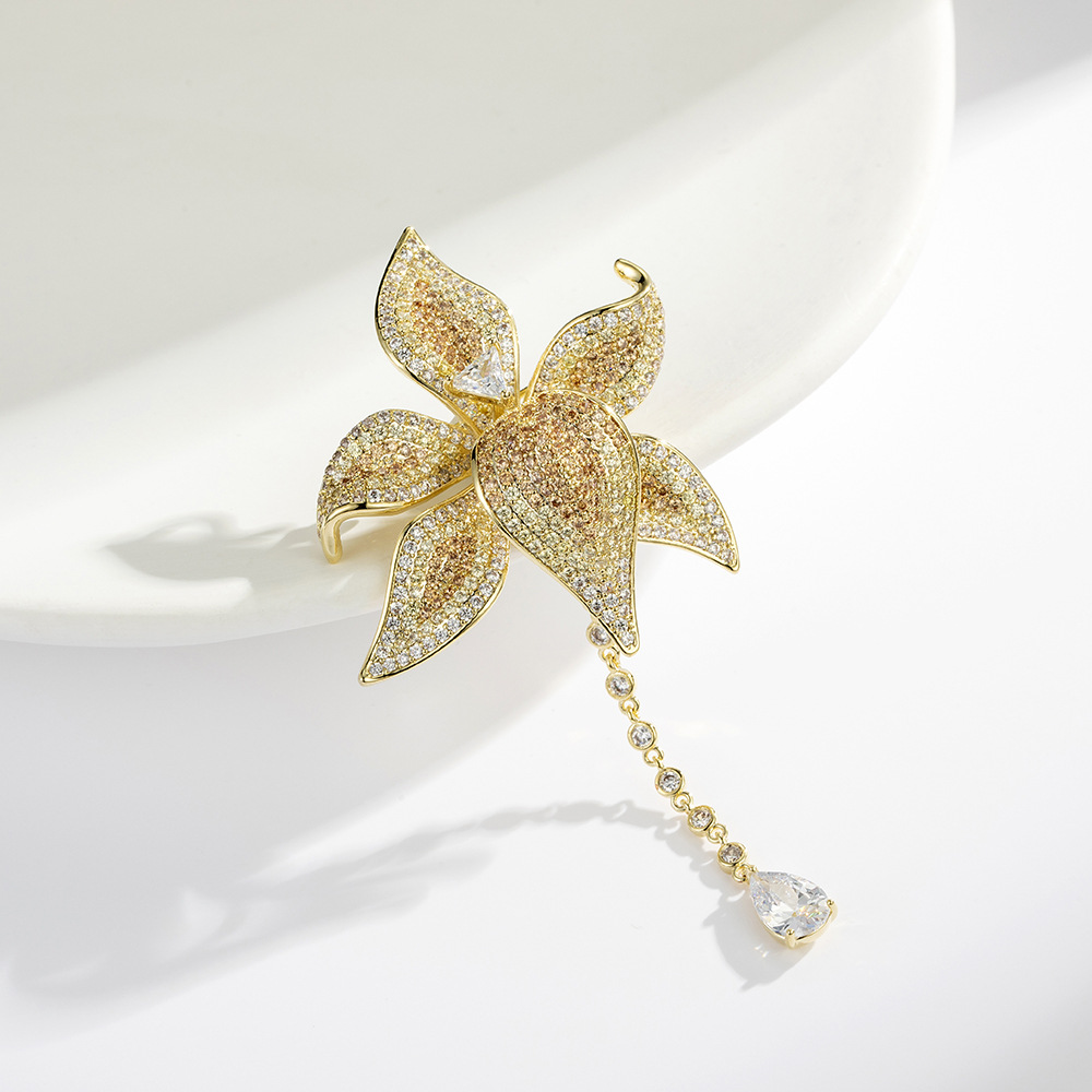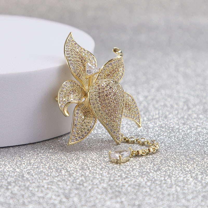 Trâm Cài Áo Hoa Lily Vàng Đính Đá Cao Cấp