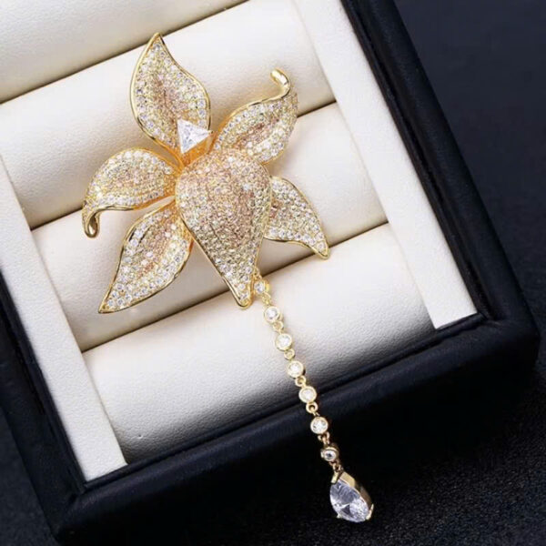 Cài áo hoa lily vàng đính đá cao cấp không chỉ là món trang sức tuyệt đẹp mà còn là món quà ý nghĩa để dành tặng cho những người phụ nữ quan trọng trong cuộc đời bạn. Đây là món quà thể hiện sự quan tâm, trân trọng và tình cảm chân thành của bạn dành cho người nhận.