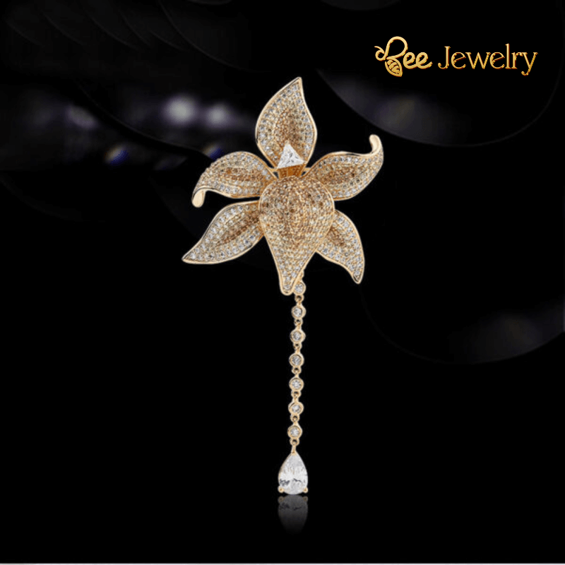 Trâm cài áo hoa lily vàng đính đá cao cấp là món trang sức hoàn hảo để tô điểm cho vẻ ngoài của bạn, mang đến nét quý phái, thanh lịch và quyến rũ. Thiết kế lấy cảm hứng từ vẻ đẹp kiêu sa của hoa lily, kết hợp cùng những viên đá cao cấp lấp lánh, tạo nên một tác phẩm nghệ thuật đầy giá trị.