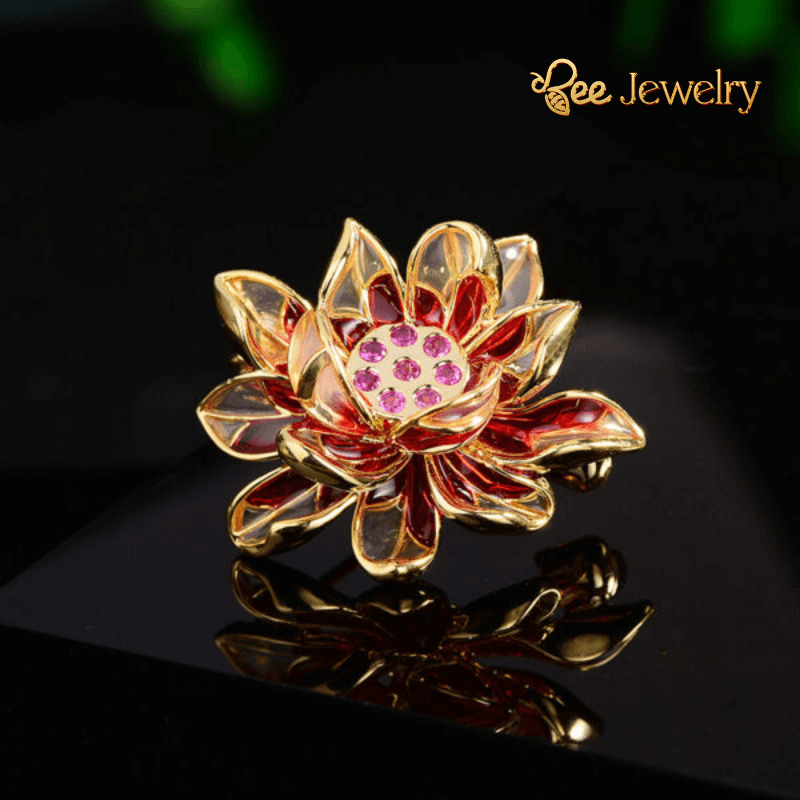 Không chỉ đẹp ở vẻ ngoài, cài áo hoa sen đỏ còn chinh phục trái tim bởi sự tỉ mỉ trong từng chi tiết. Chất liệu hợp kim cao cấp được lựa chọn kỹ lưỡng, đảm bảo độ bền đẹp và sáng bóng theo thời gian. Công nghệ kim hoàn ngành trang sức mạ vàng 18k tiên tiến mang đến lớp phủ vàng rực rỡ, không phai màu, tạo nên vẻ ngoài sang trọng và đẳng cấp.