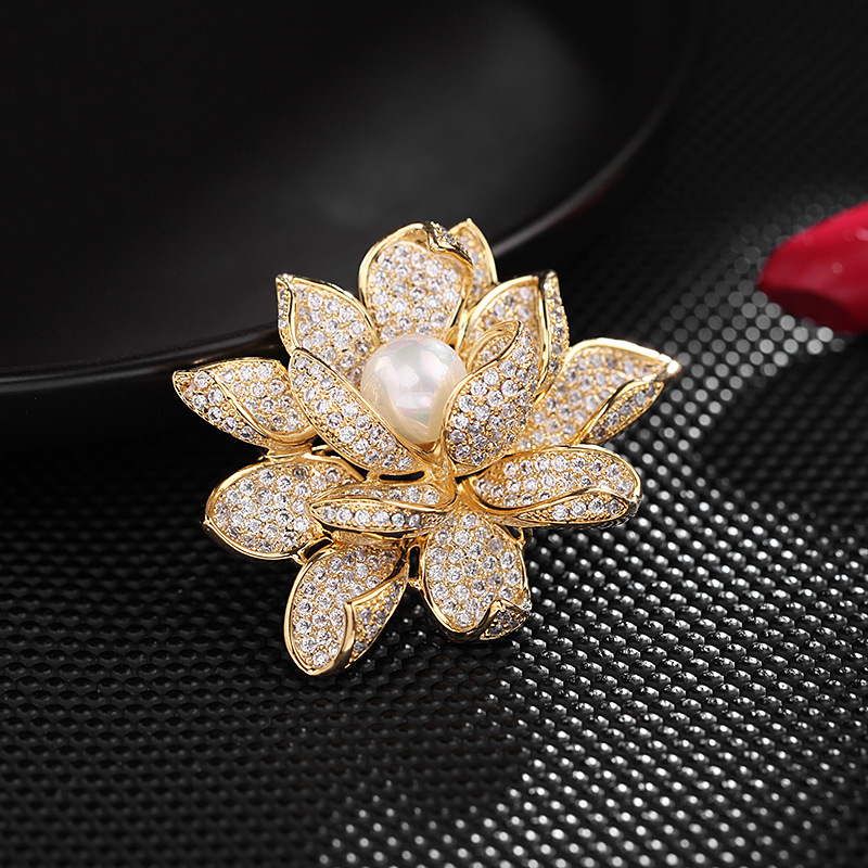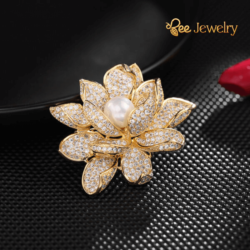 Trâm Cài Áo Hoa Sen Vàng Đính Ngọc Trai Cao Cấp: Vẻ Đẹp Quý Phái và Tinh Tế