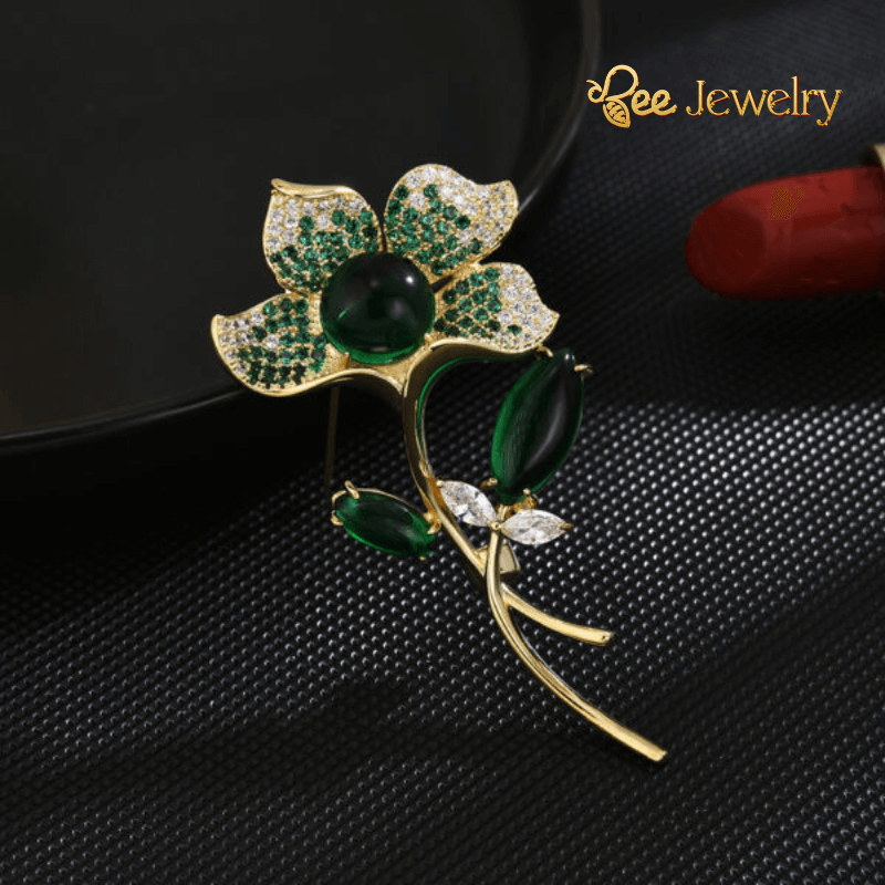 Trâm Cài Áo Hoa Sen Xanh Đính Ngọc Lục Bảo Cao Cấp – Tinh Hoa Nghệ Thuật, Biểu Tượng Của Sự Thanh Khiết và Sang Trọng