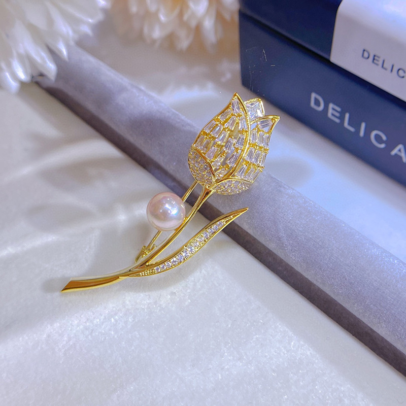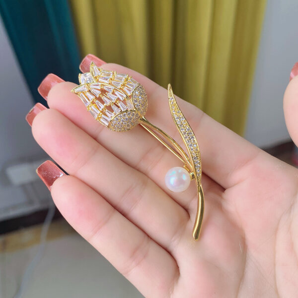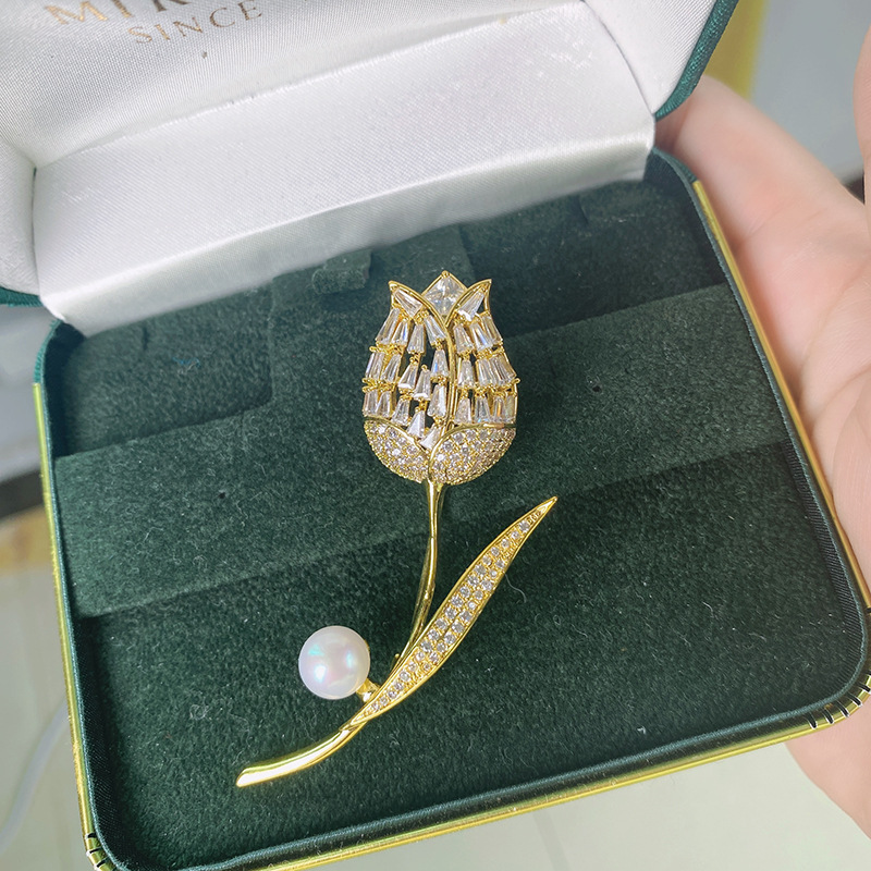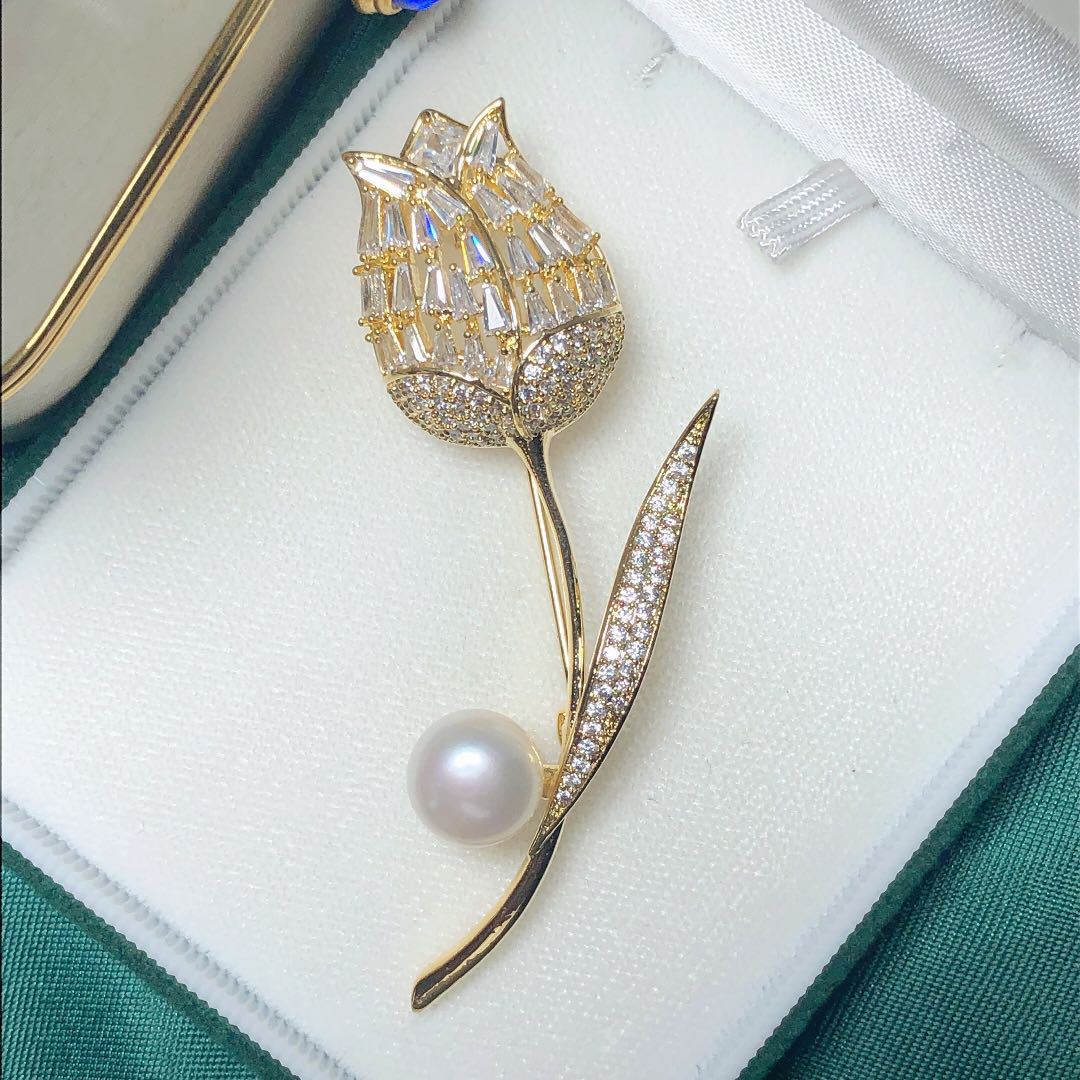 Trâm Cài Áo Hoa Tulip Ngọc Trai Cao Cấp – Sang Trọng & Quyến Rũ