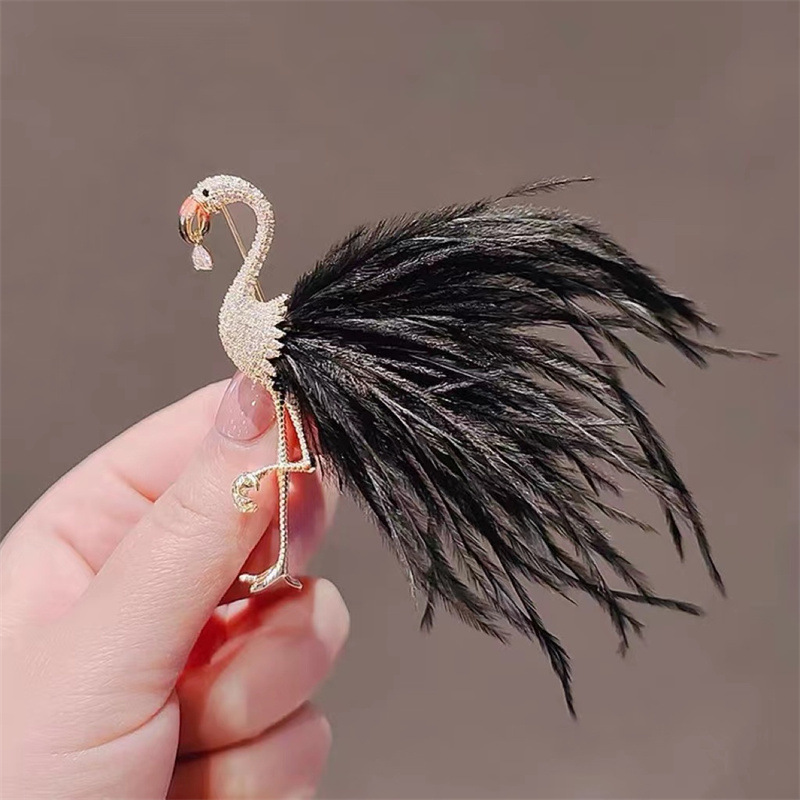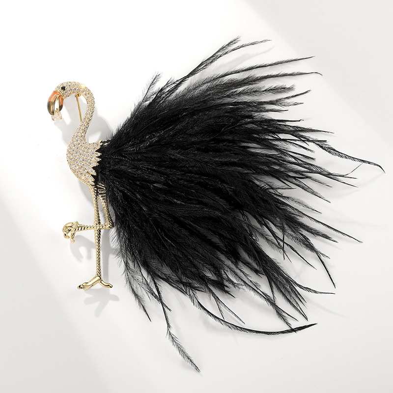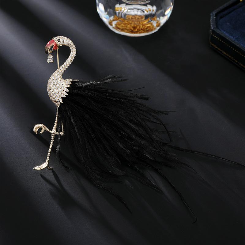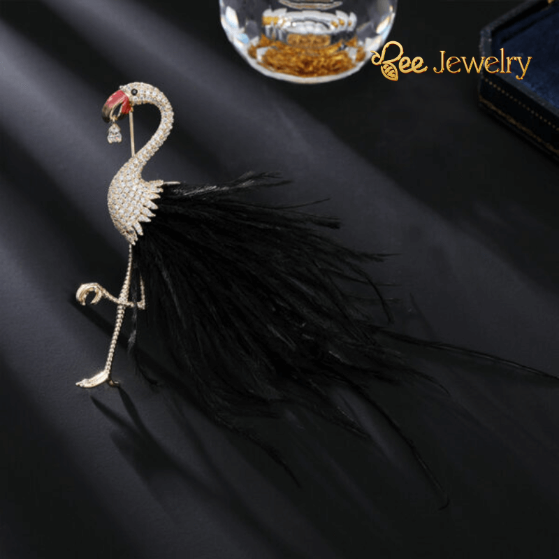 Cài Áo Hồng Hạc Lông Vũ Đen Đính Đá – Bản Giao Hưởng Quyến Rũ Của Quyền Lực Và Dịu Dàng