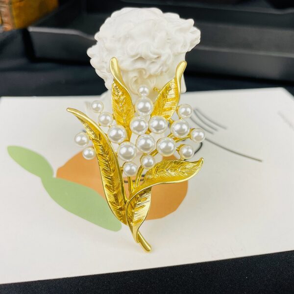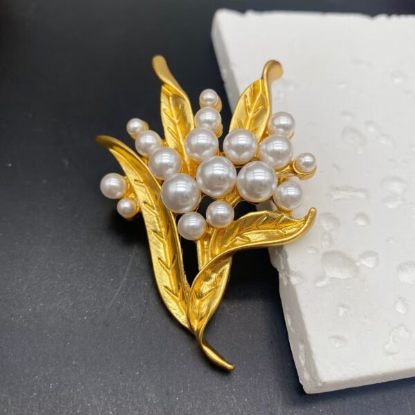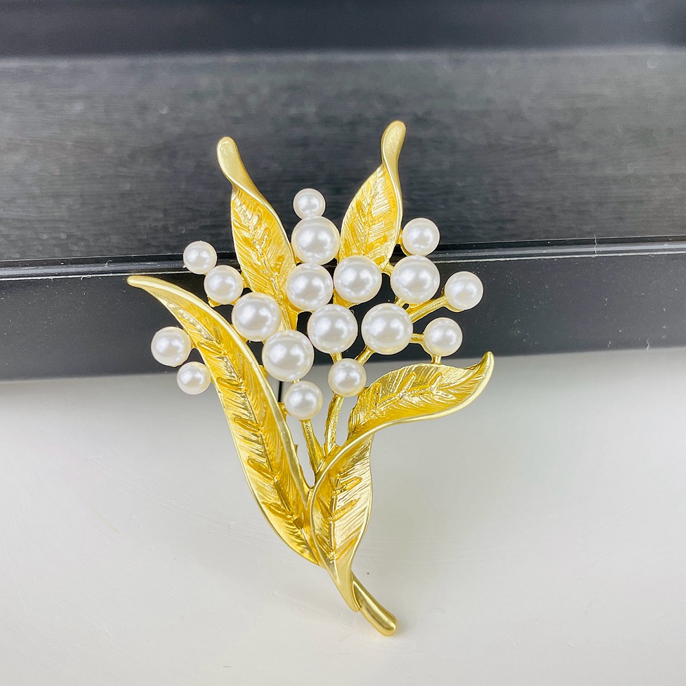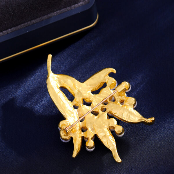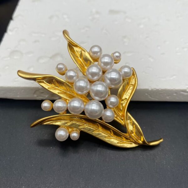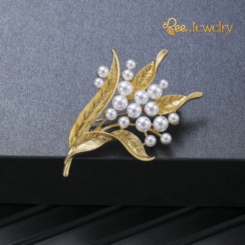 Trâm Cài Áo Lá Vàng 24K Đính Ngọc Trai
