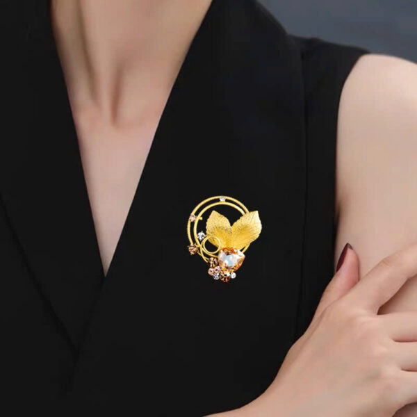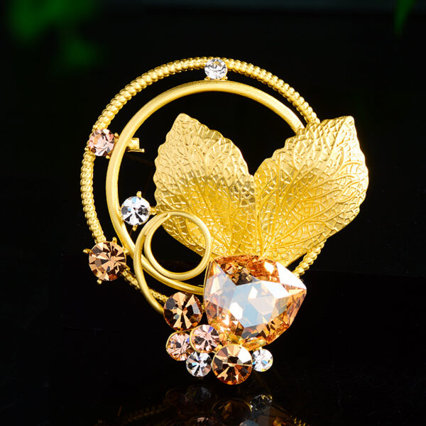 Trâm Cài Áo Lá Vàng Đính Pha Lê Ánh Kim