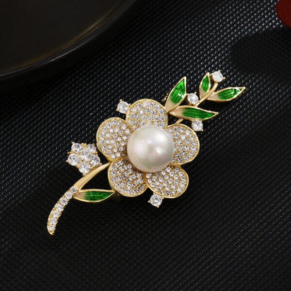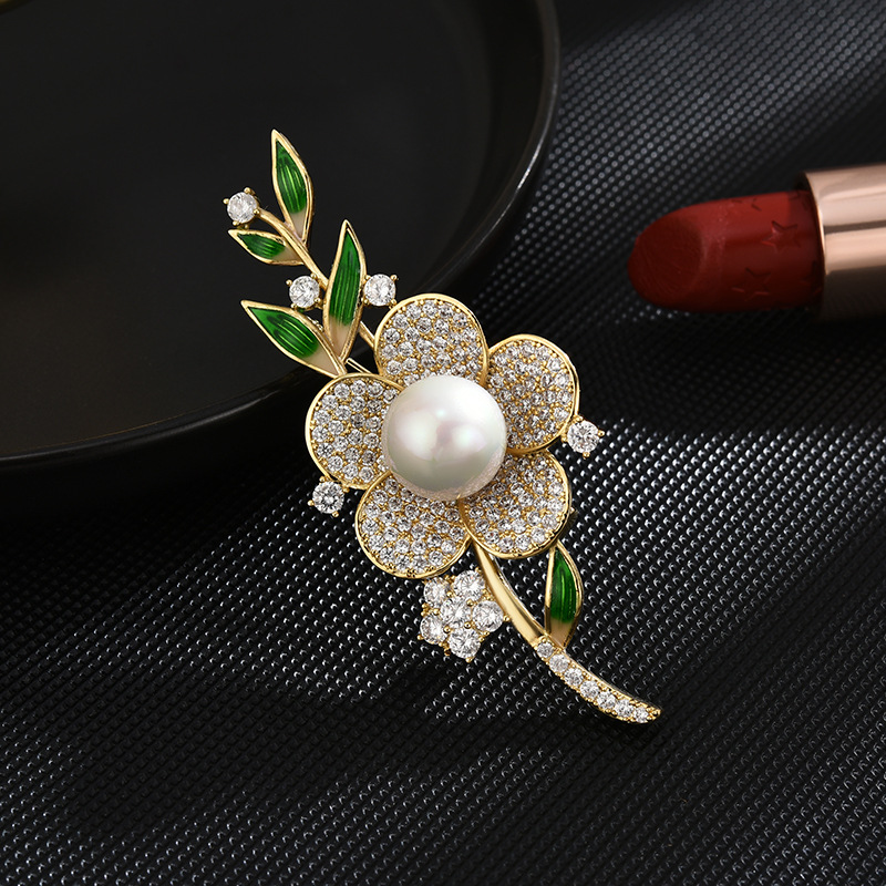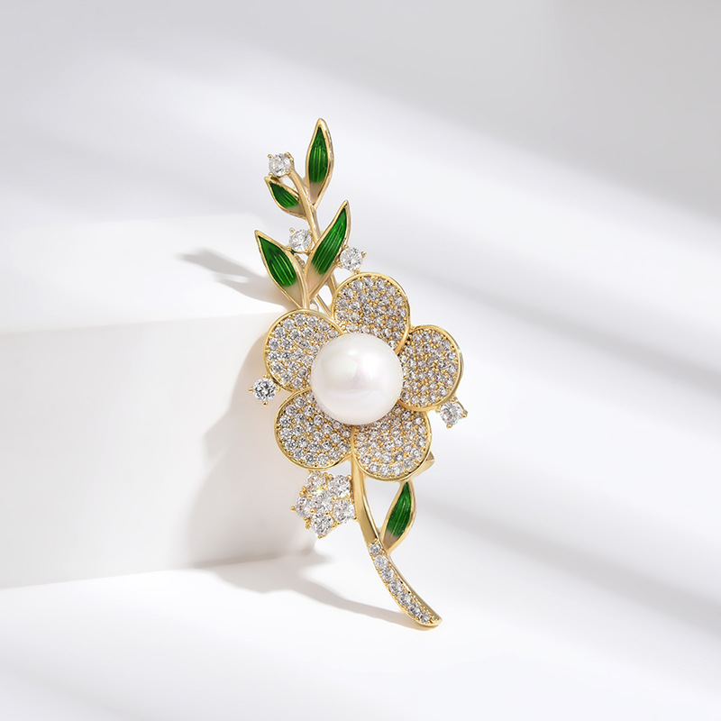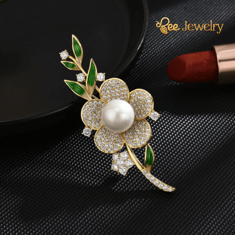 Trâm Cài Áo Nhành Hoa Đính Ngọc Trai