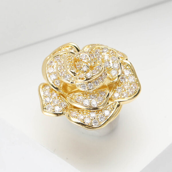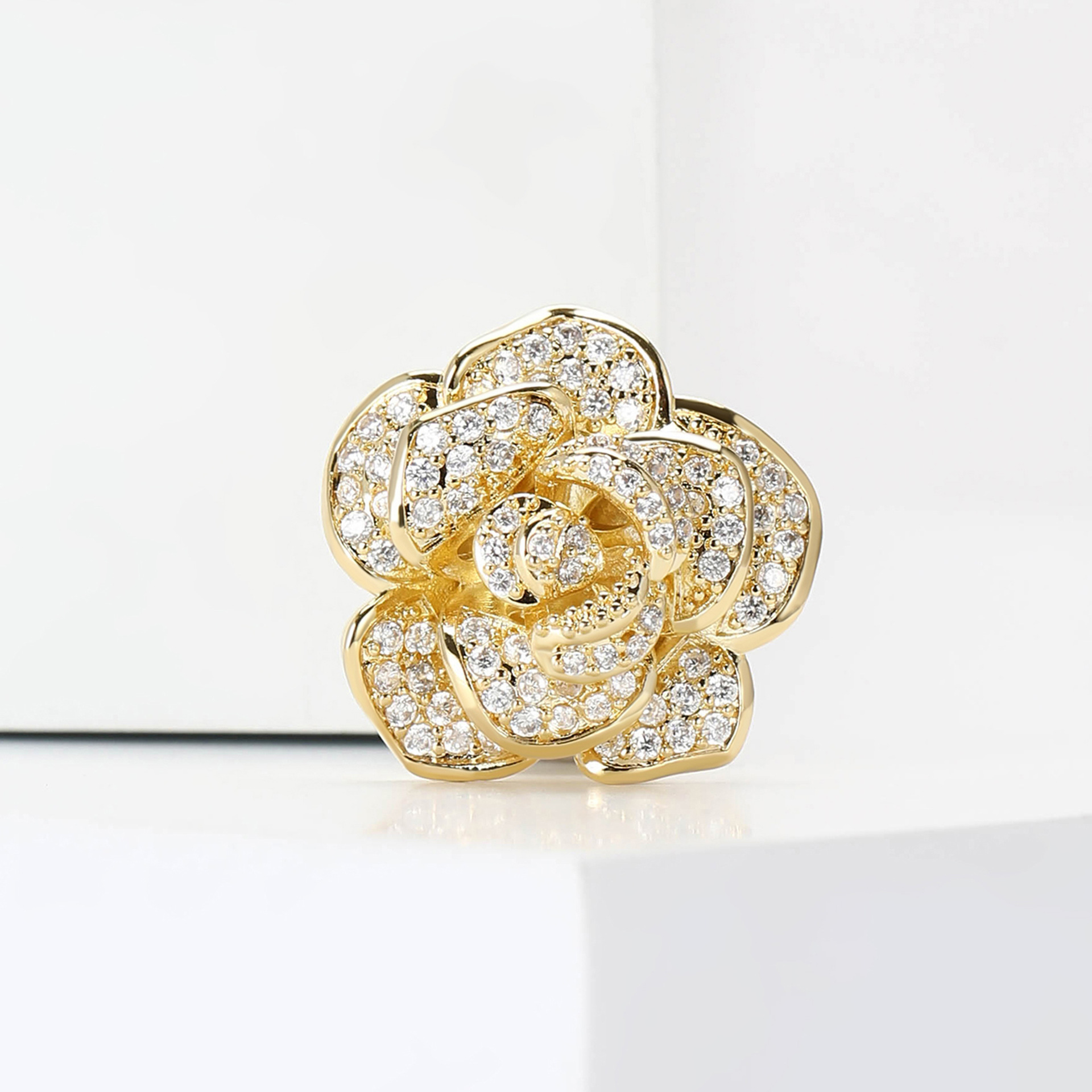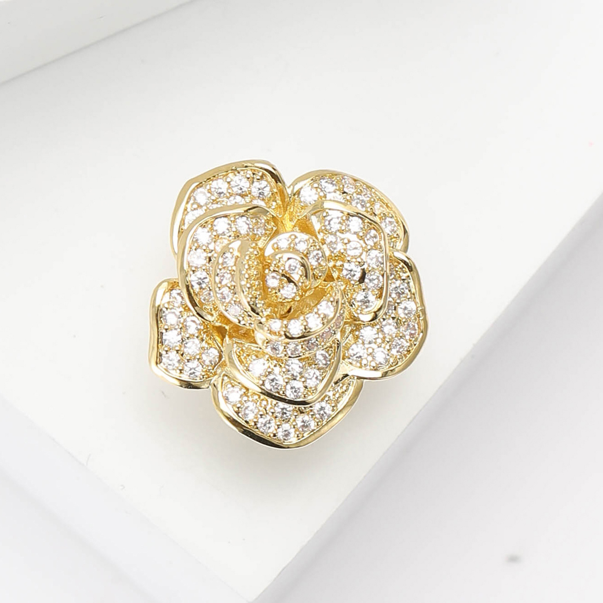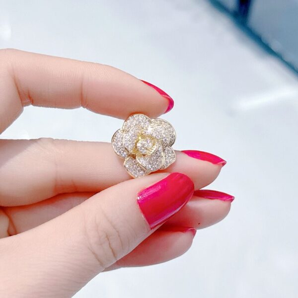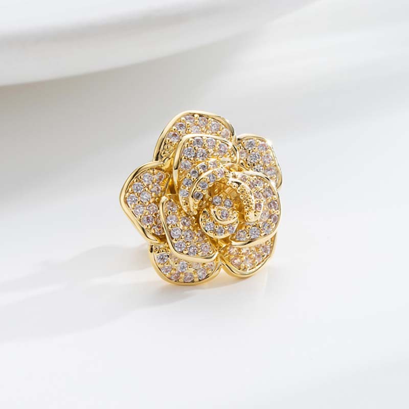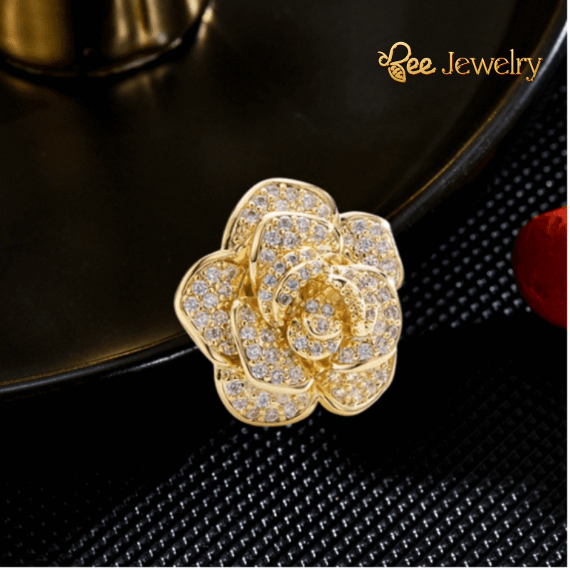 - Chất liệu: Chiếc trâm cài áo nụ hồng được làm từ kim loại mạ vàng cao cấp, đảm bảo độ bền và sáng bóng. Đá đính trên trâm cài có thể là đá quý hoặc kim cương nhân tạo, mang đến vẻ đẹp lấp lánh và sang trọng.