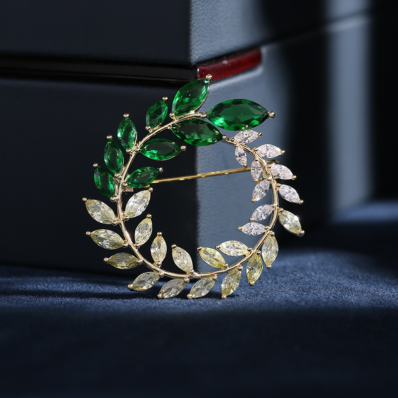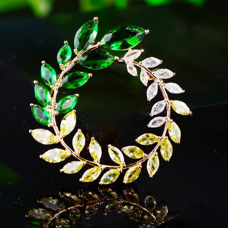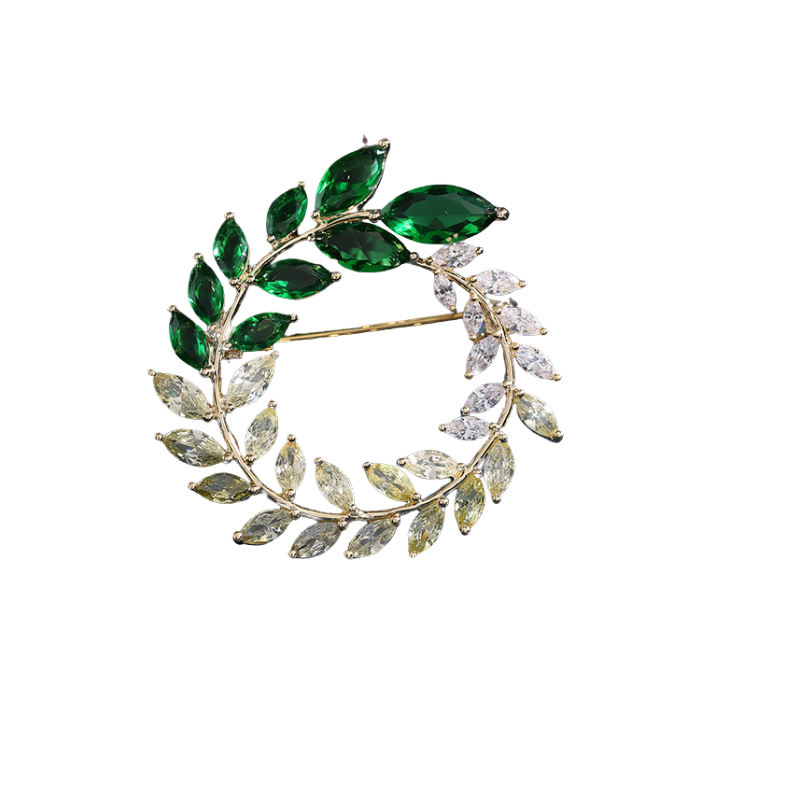 Trâm cài áo vòng lá nguyệt quế đính phale xanh cao cấp không chỉ là một món trang sức, mà còn là một tuyên ngôn về phong cách và đẳng cấp của người sở hữu.