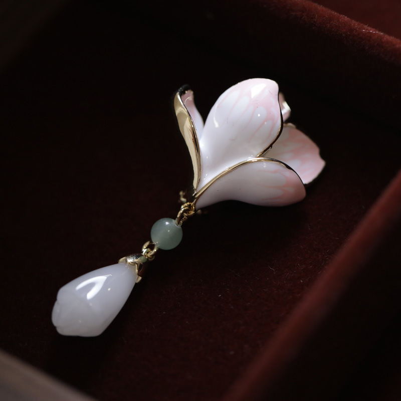 Trâm Cài Áo Hoa Mộc Lan Trắng Tráng Men Cao Cấp – Vẻ Đẹp Thanh Khiết, Quý Phái